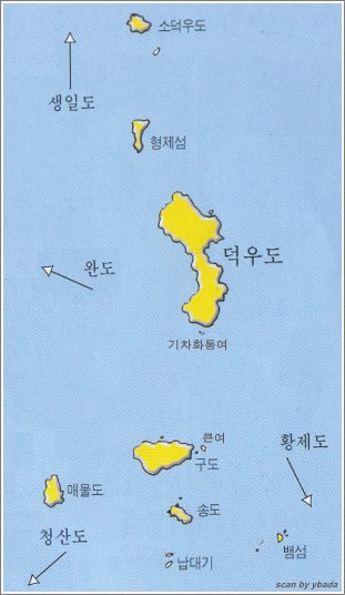 Àü¶ó³²µµ ¿Ïµµ±º »ýÀϸ鿡 µþ¸° ¼¶. ¸éÀû 1.2§´ÀÌ´Ù. ¿Ïµµ¿¡¼ ³²µ¿ÂÊÀ¸·Î ¾à 25§° ÇØ»ó¿¡ ÀÖ´Ù. Á¶¼± È¿Á¾ ¶§ ¹Ý³² ¹Ú¾¾°¡ óÀ½À¸·Î µé¾î¿Í »ì±â ½ÃÀÛÇÏ¿´´Ù°í ÇÑ´Ù. ¼¶ÀÇ ¸ð¾çÀÌ ¸Ö¸®¼ º¸¸é »ìÂð ¼Ò°¡ ¾É¾Æ ÀÖ´Â Çü»óÀ̶ó ÇÏ¿© ´ö¿ìµµ¶ó ÇÏ¿´´Ù.